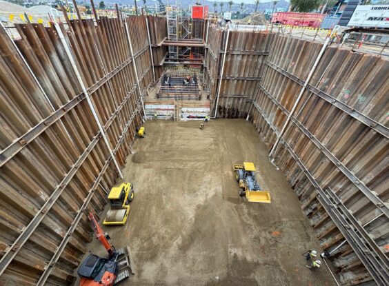 Welding & Dewatering: Addressed groundwater intrusion and shoring challenges with additional wells, in-shore sheet pile welding, and geofabric rock reinforcement to ensure safety and stability.