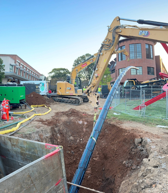 Public Infrastructure Integration: Separated storm and sanitary systems while upgrading domestic water lines alongside campus construction.